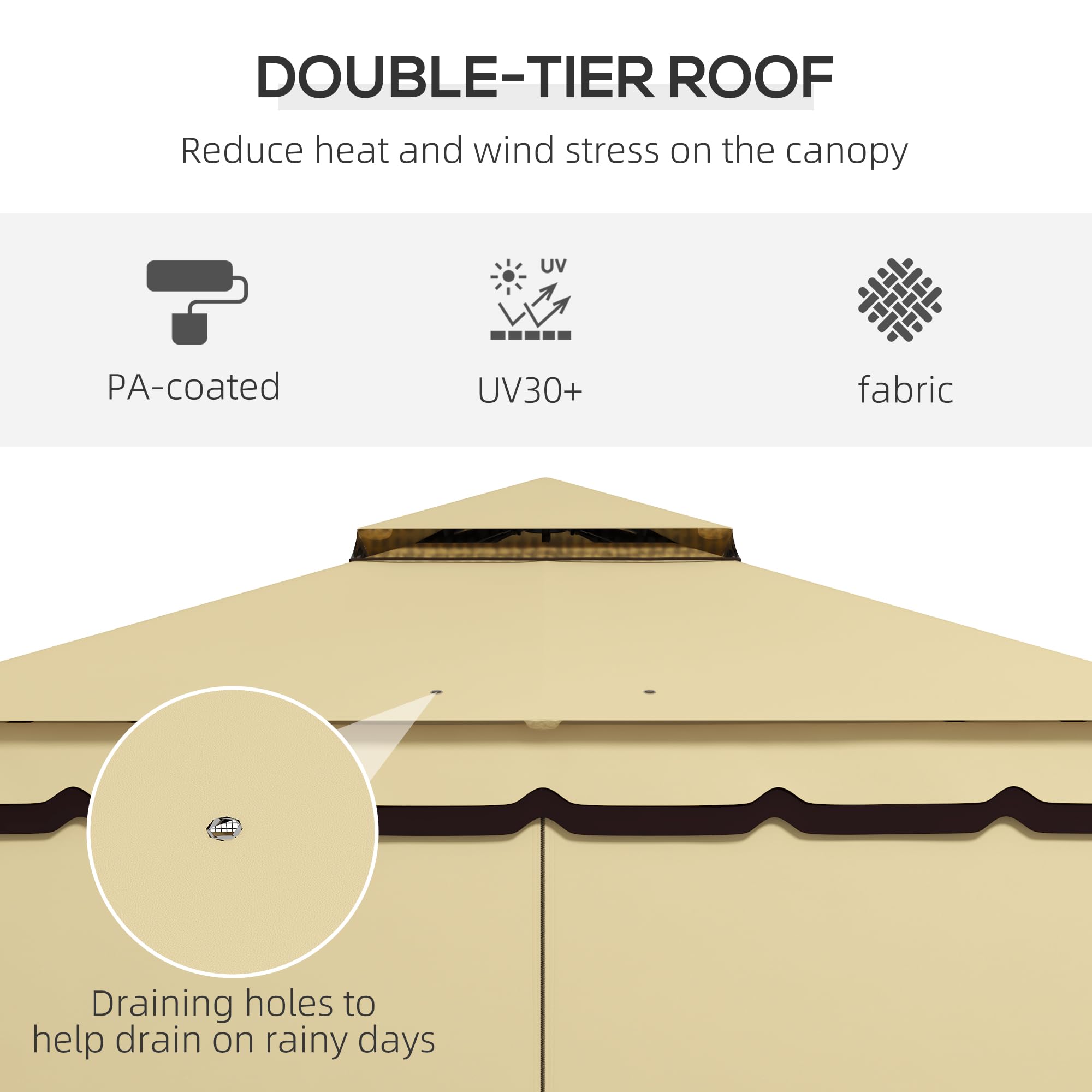 Outsunny 10' x 12' Patio Gazebo, Double Roof Outdoor Gazebo Canopy Shelter with Netting and Curtains, Solid Metal Frame for Garden, Lawn and Deck, Beige