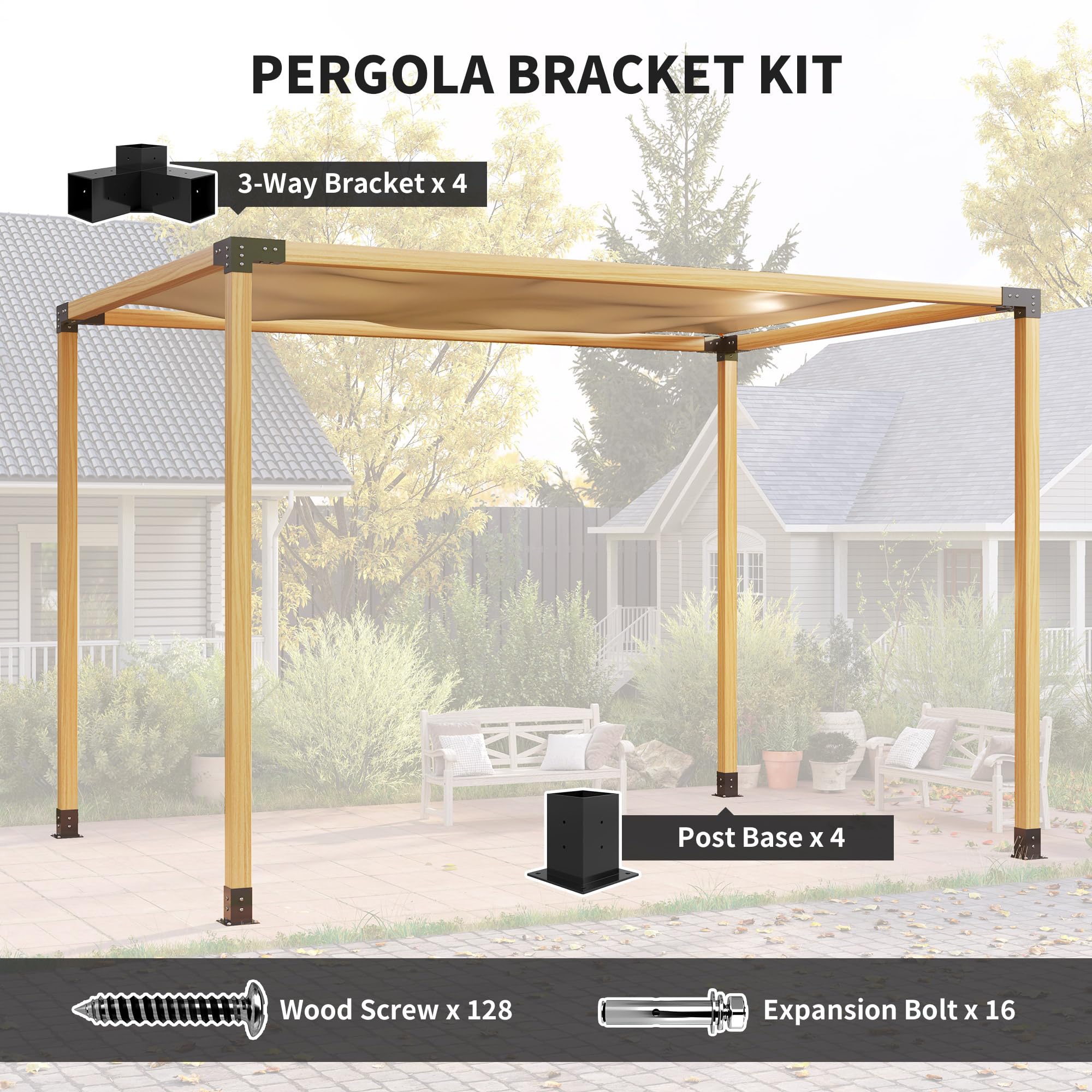 - Easy DIY Installation: Comes with expansion screws, allowing for quick assembly of the pergola bracket kit—simply cut the wood to your desired length