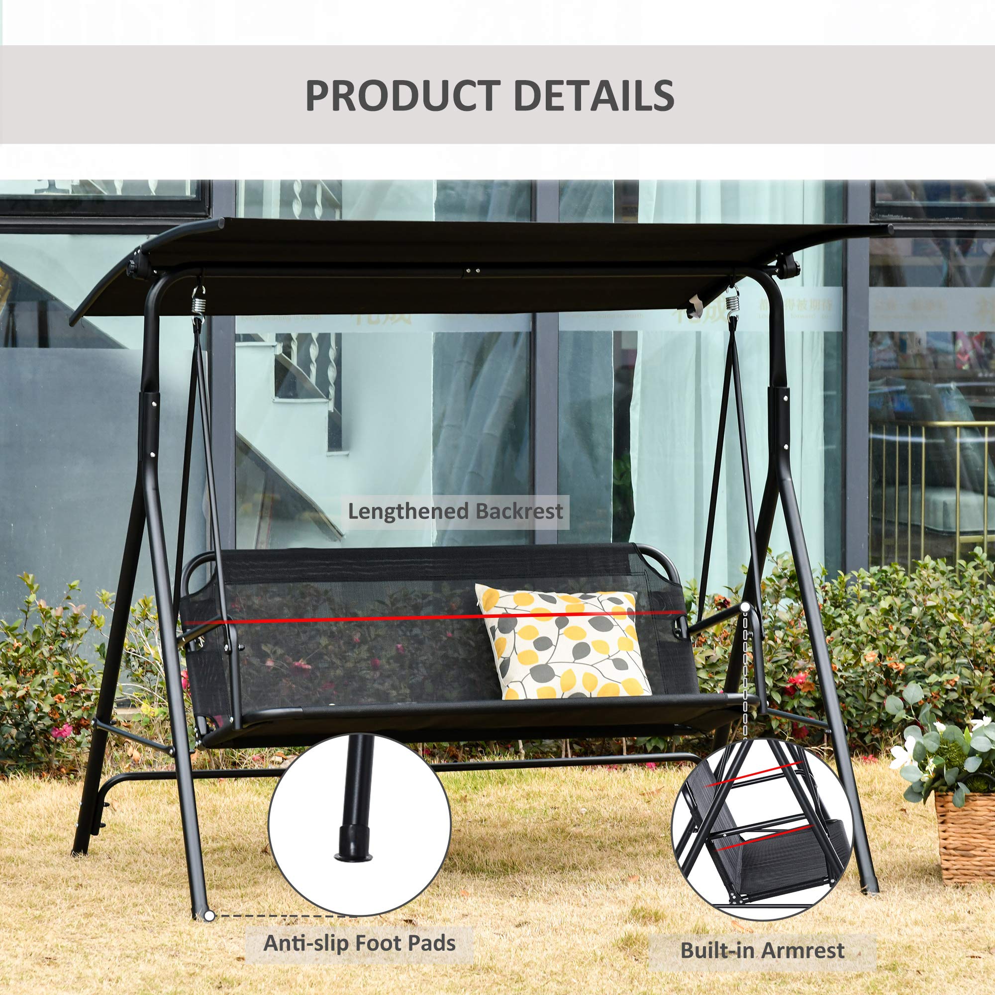 Outsunny Patio Swing Chair with Canopy, Seats 2 Adults Loveseat Bench with Adjustable Tilt Canopy, Armrests, A-Frame Steel, Breathable Mesh for Backyard, Garden, Black