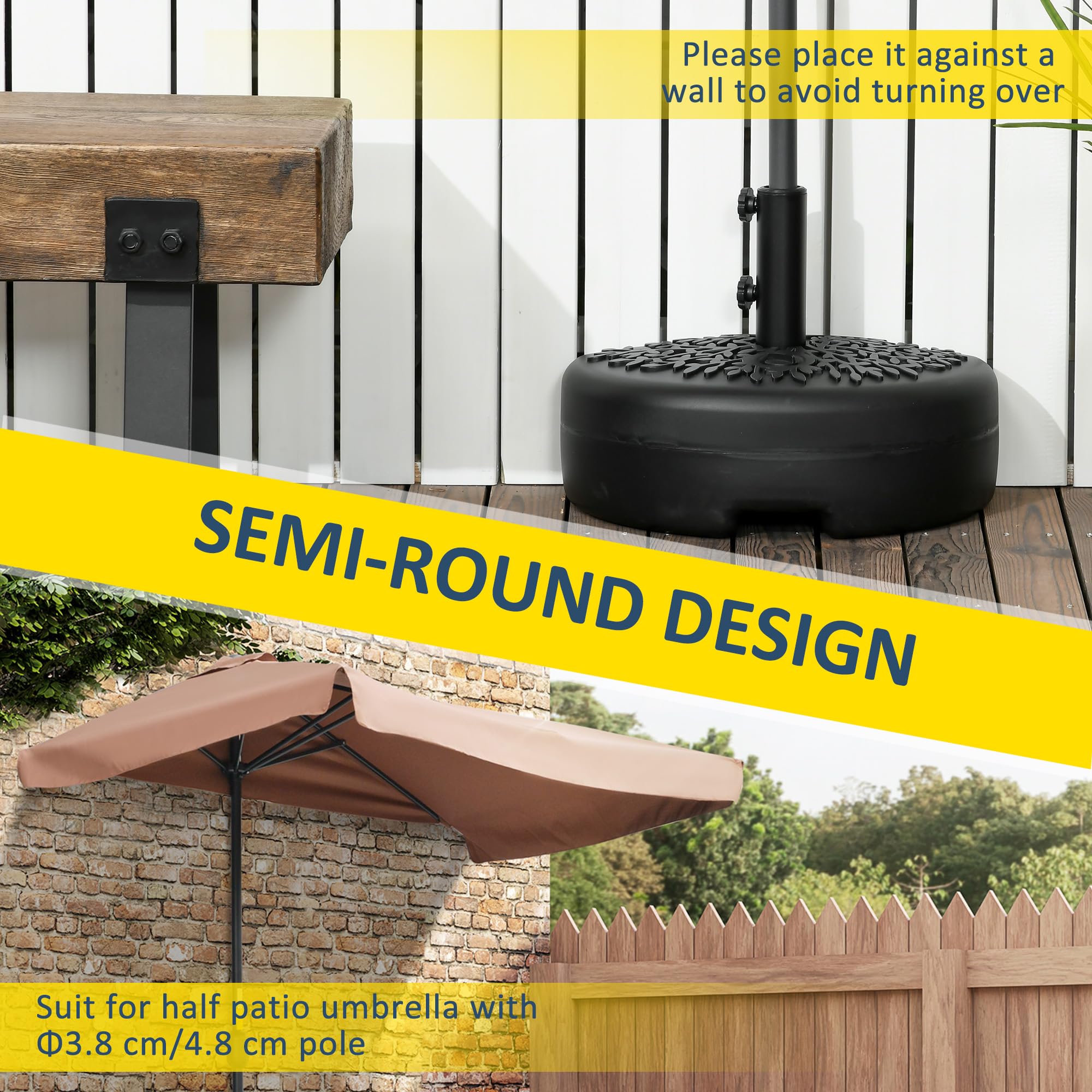 Outsunny Sand or Water Filled Half Patio Umbrella Stand Holder, Half Round Umbrella Base, Fit 1.5" or 2" Pole, 40lb Capacity Water or 46lb Capacity Sand for Lawn, Deck, Backyard and Garden, Black