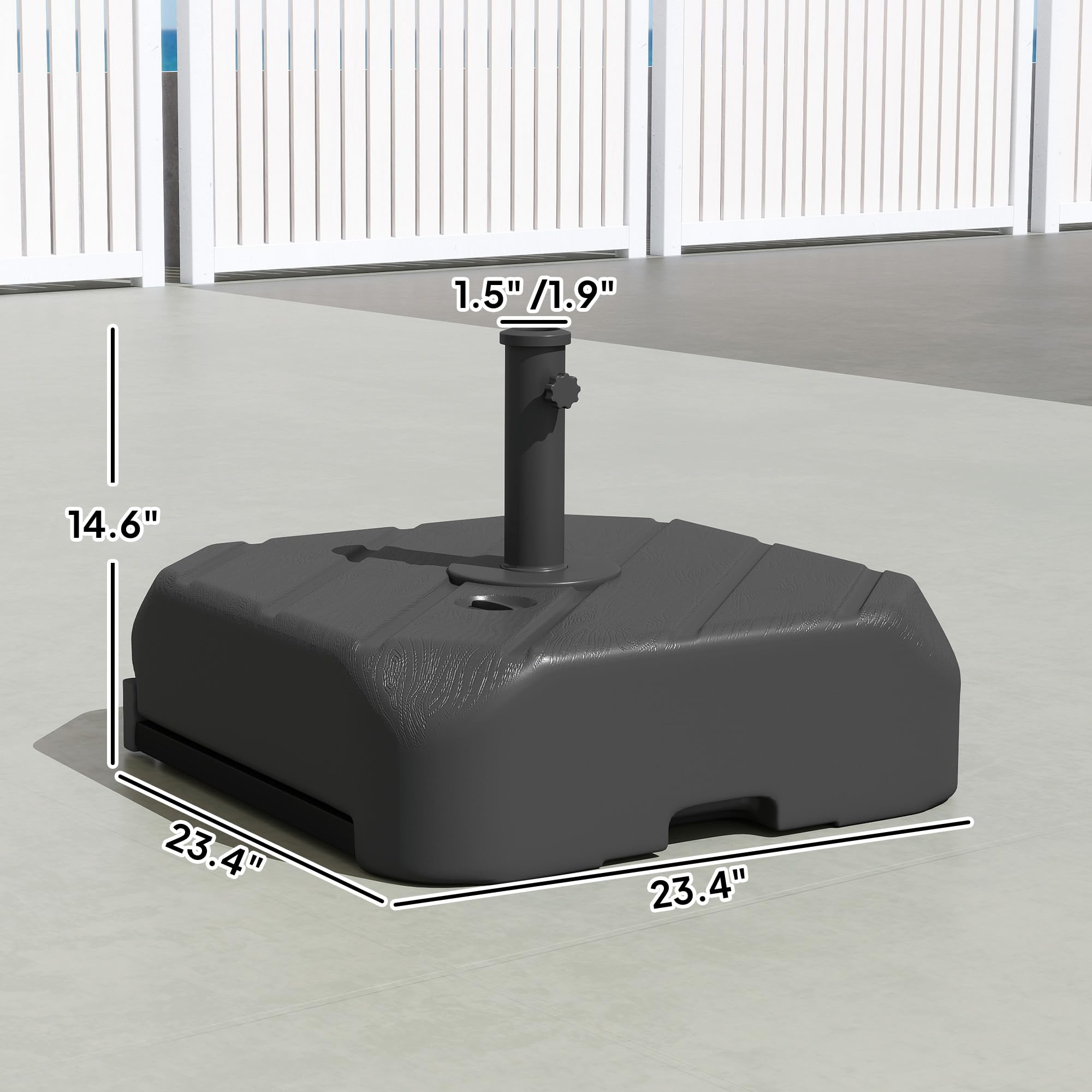 Outsunny Square Patio Umbrella Base with Wheels, Telescopic Handle, 158 lb Sand or 99 lb Water Filled Heavy Duty Umbrella Stand Base with Holder for 1.5"/1.9" Poles for Outdoor, Black